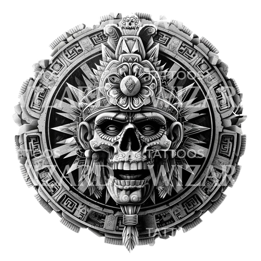 Mayan Spooky Coin with Skull Tattoo Design – Tattoos Wizard Designs