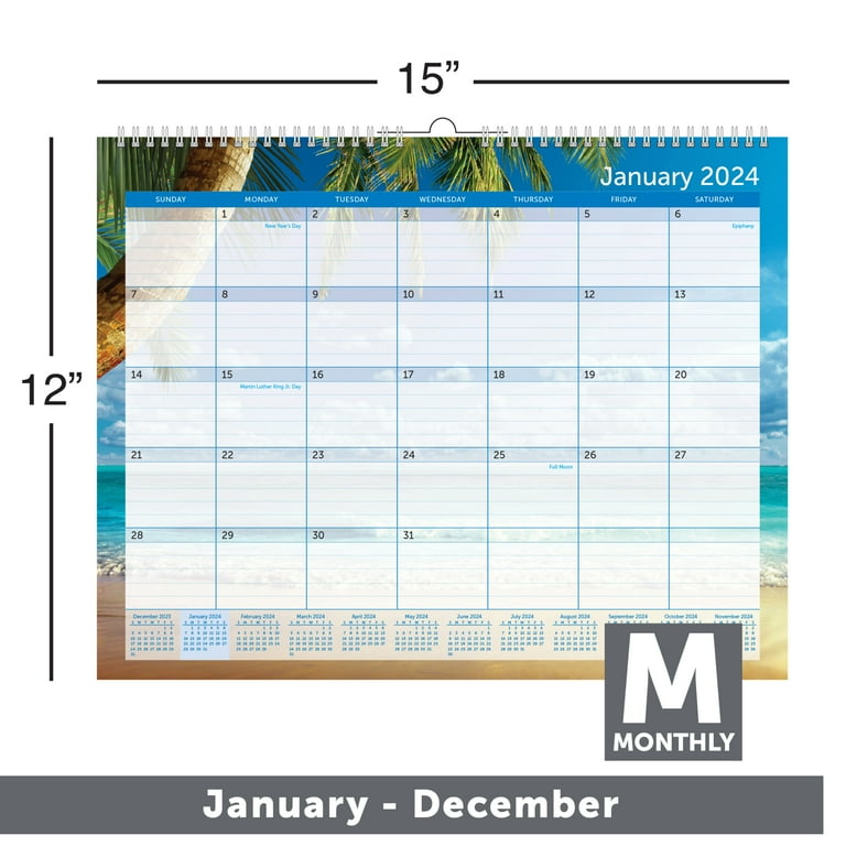 2024 Office Depot® Brand Monthly Wall Calendar, 12″ x 15″, January